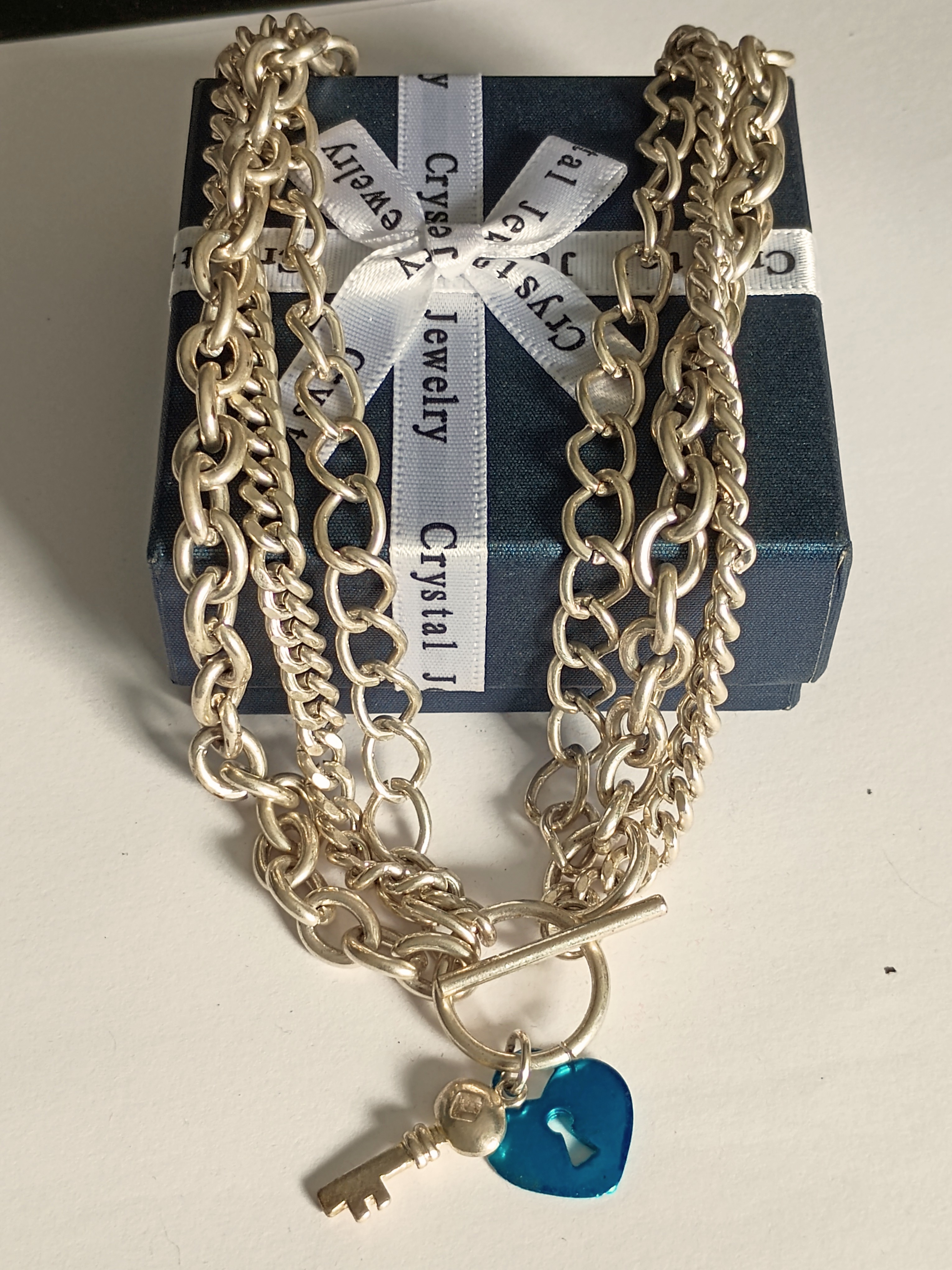 Heavy T-Bar Heart & Key Pendant Multi Chain