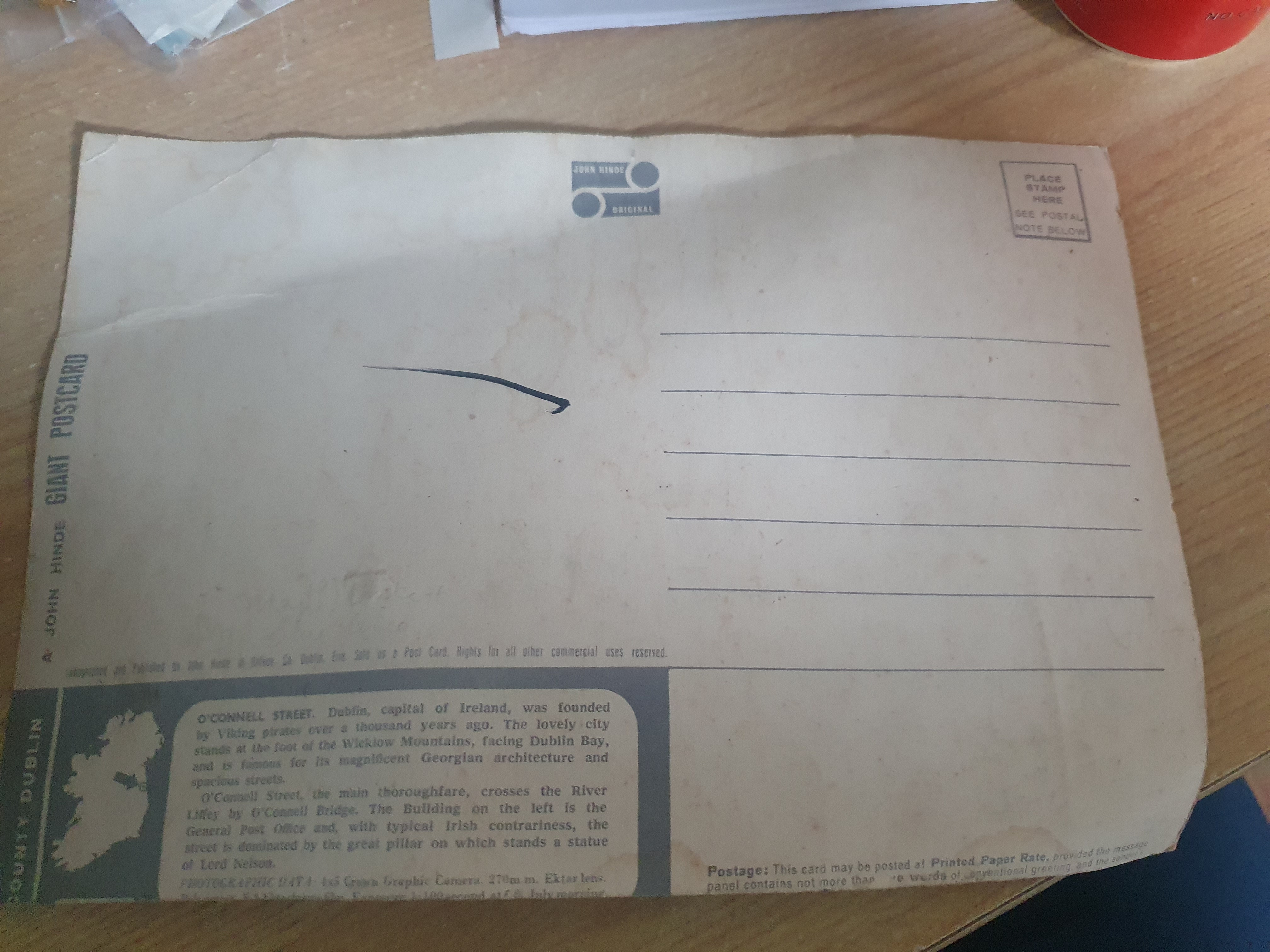 Lot 6b: Vintage giant postcard coloured of Dublin o connelly Street