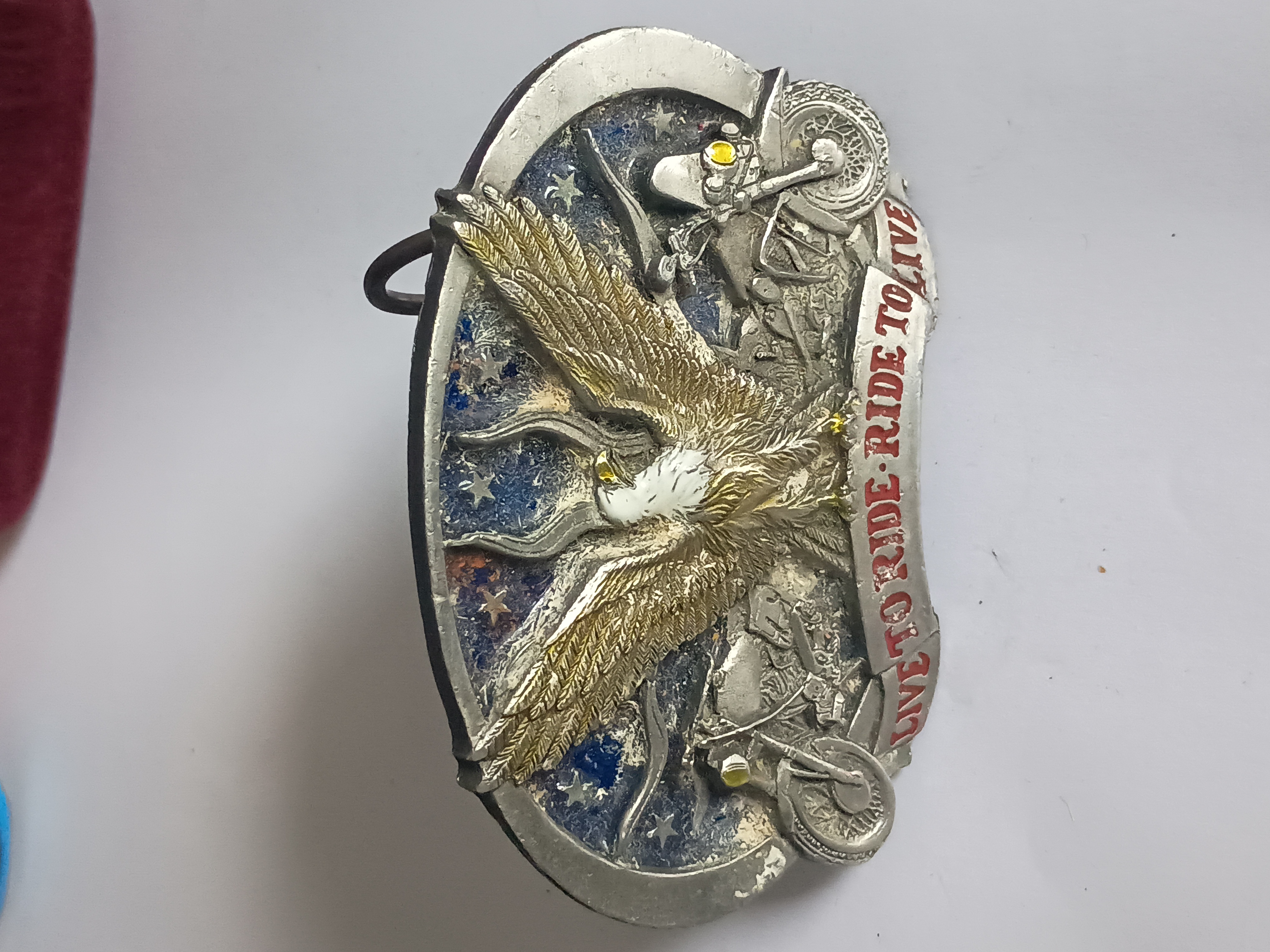 Lot 74: Vintage Heavy Pewter 1990s Live To Ride Motorcycle Belt Buckle