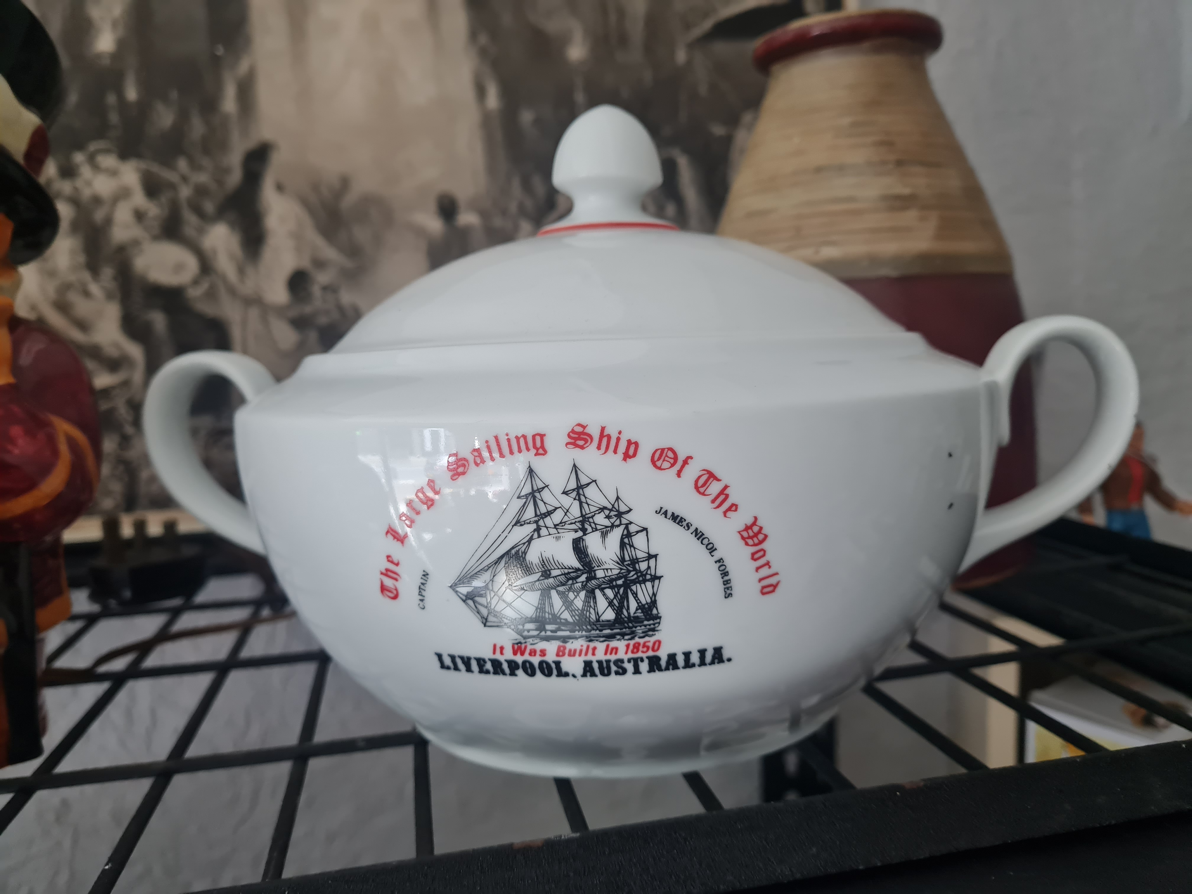 Lot 12t: Large Saling ship Liverpool, Australia casserole bowl