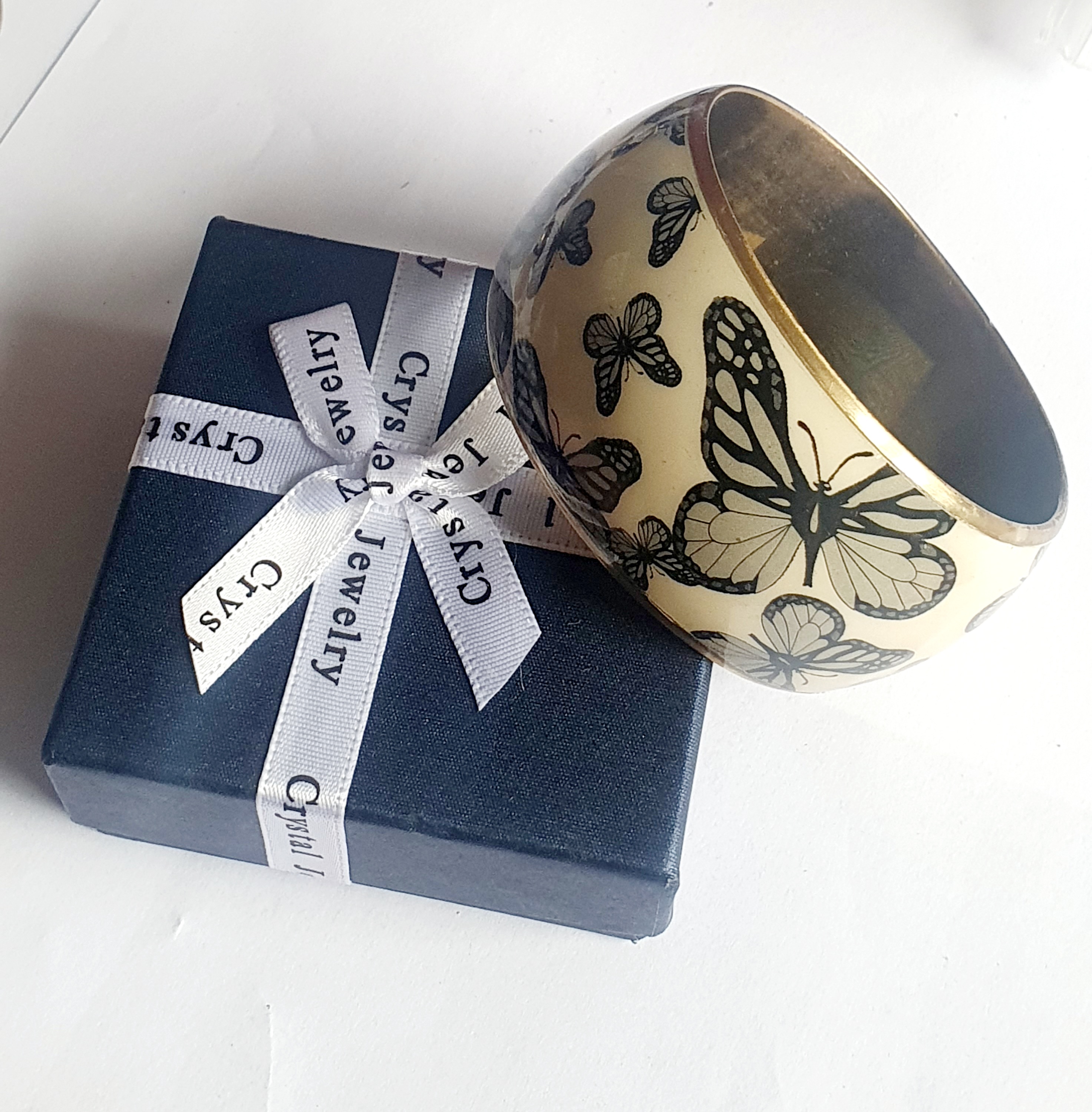 Ladies Vintage Solid Butterfly Detail Bangle