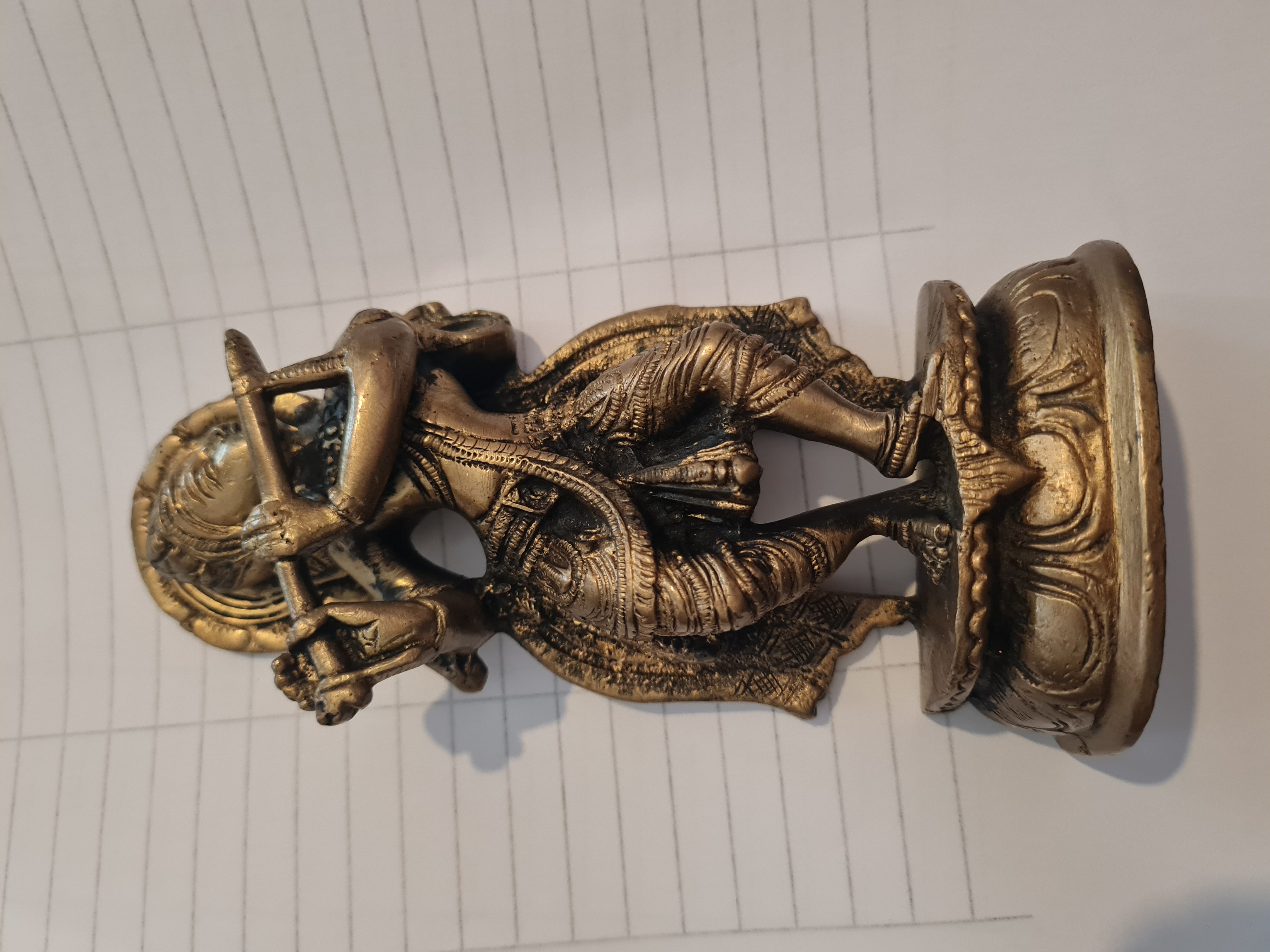 Lot 57: Antique Lord Krishna Handwork Brass Statue Silver Inlay Collectible Idol