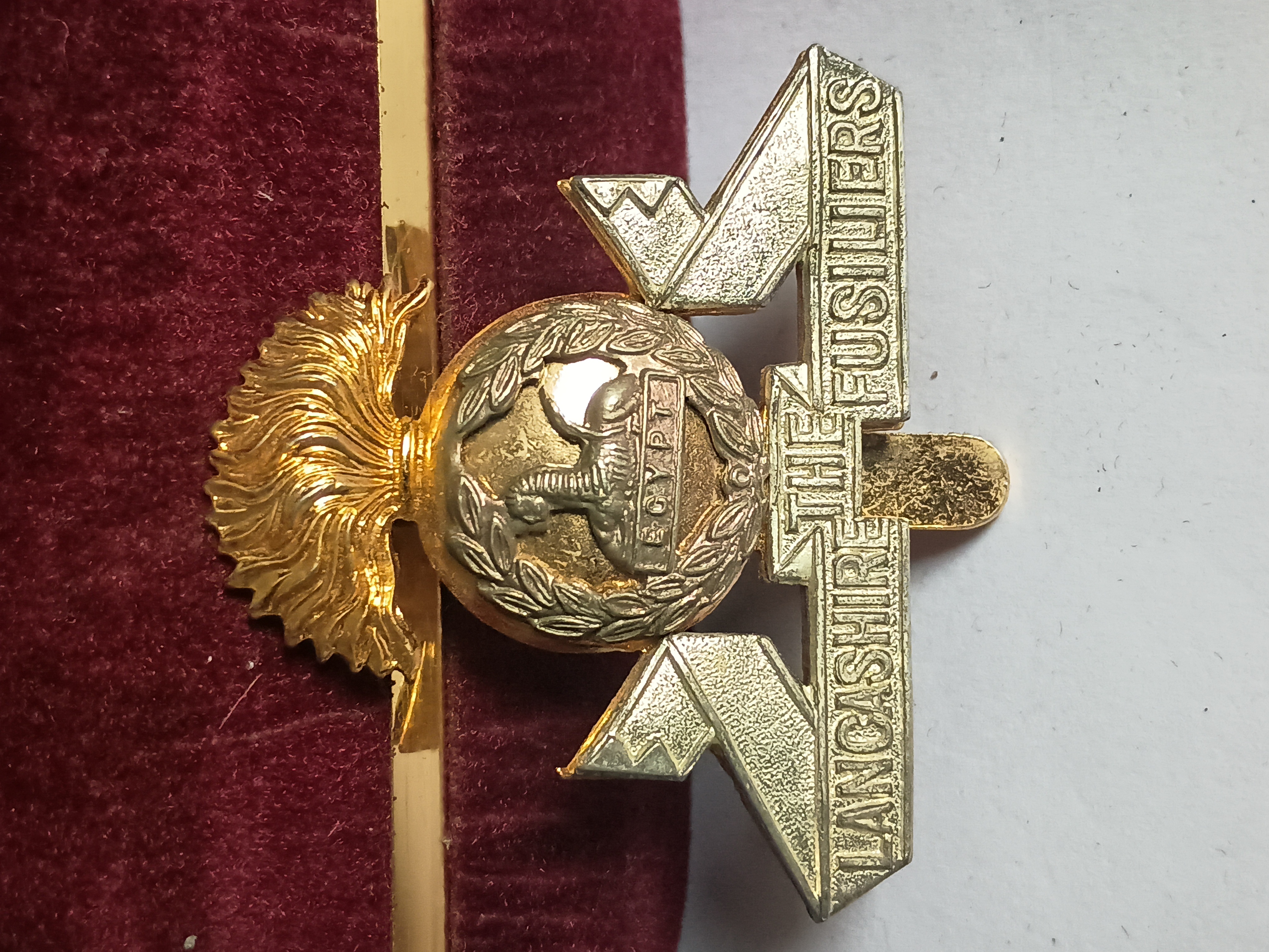 Lot 103b: The Lancashire Fusiliers Regiment Cap Badge Gilt Slider Vintage