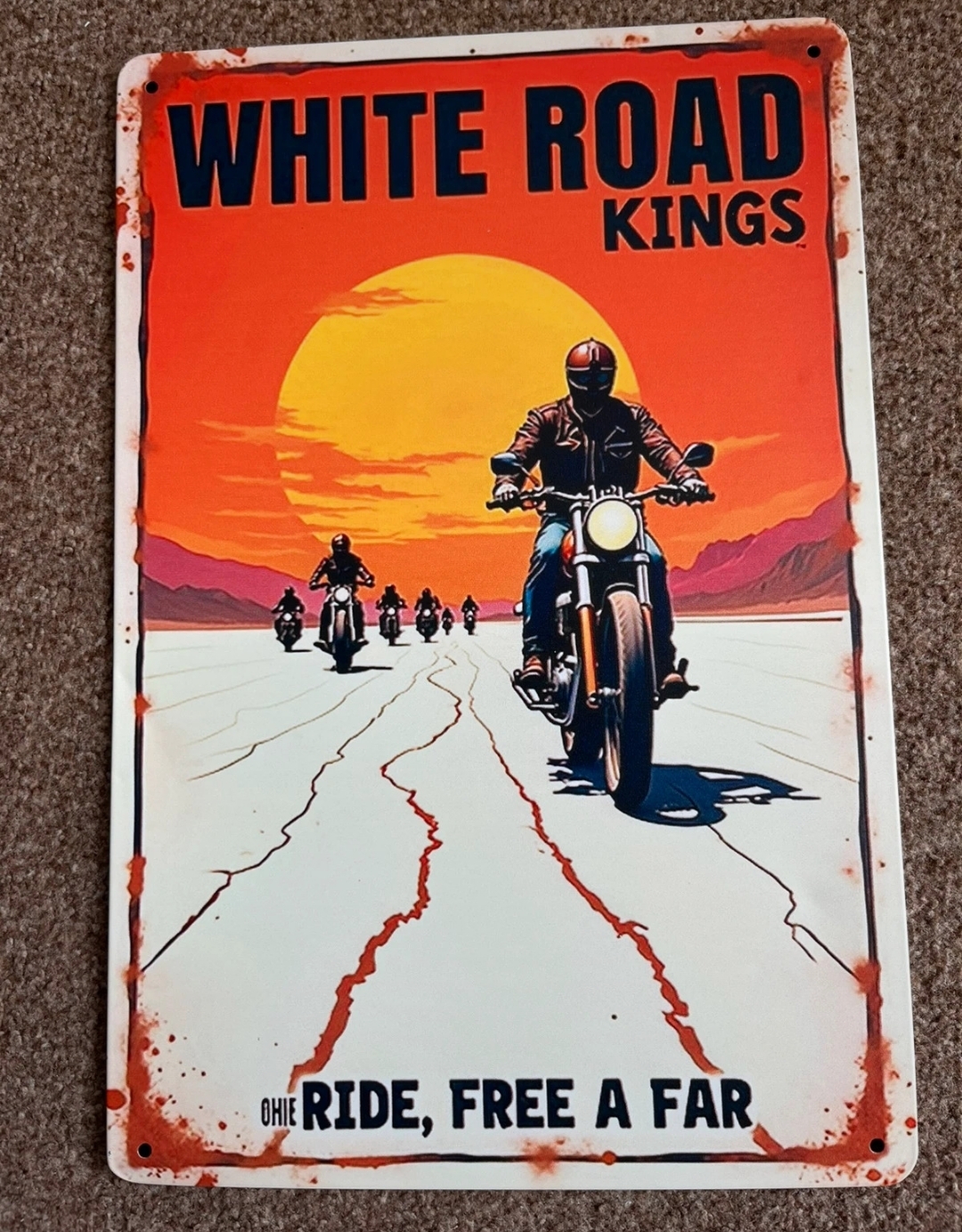 White Road kings tin sign