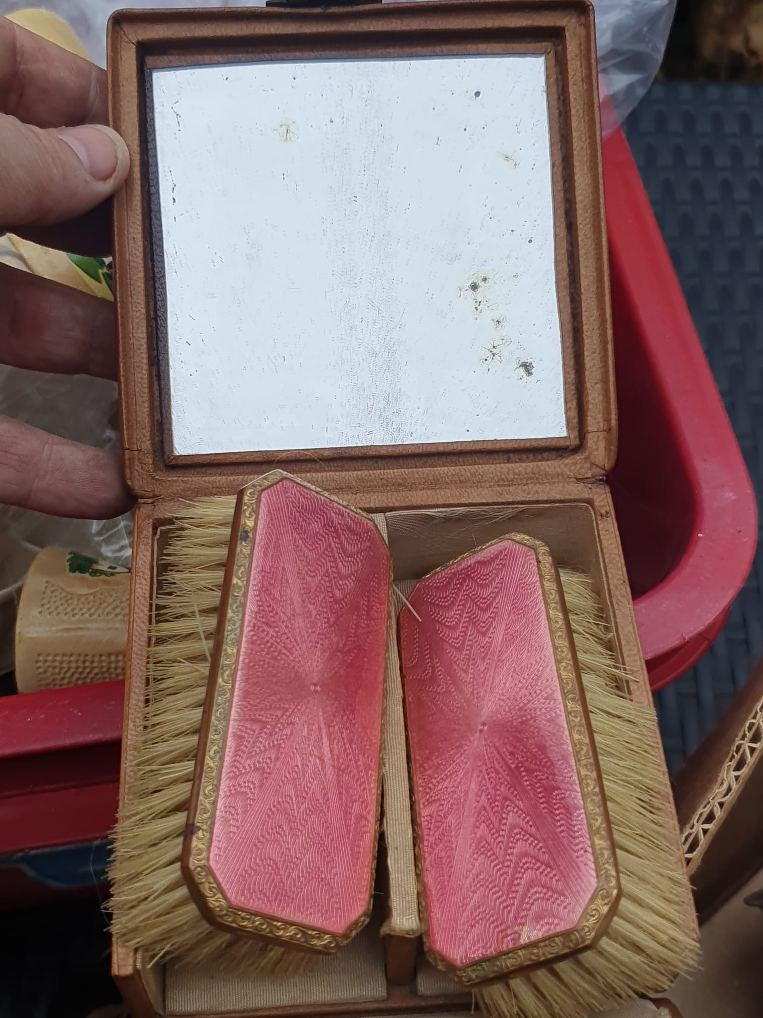 Cased mirror n brush set