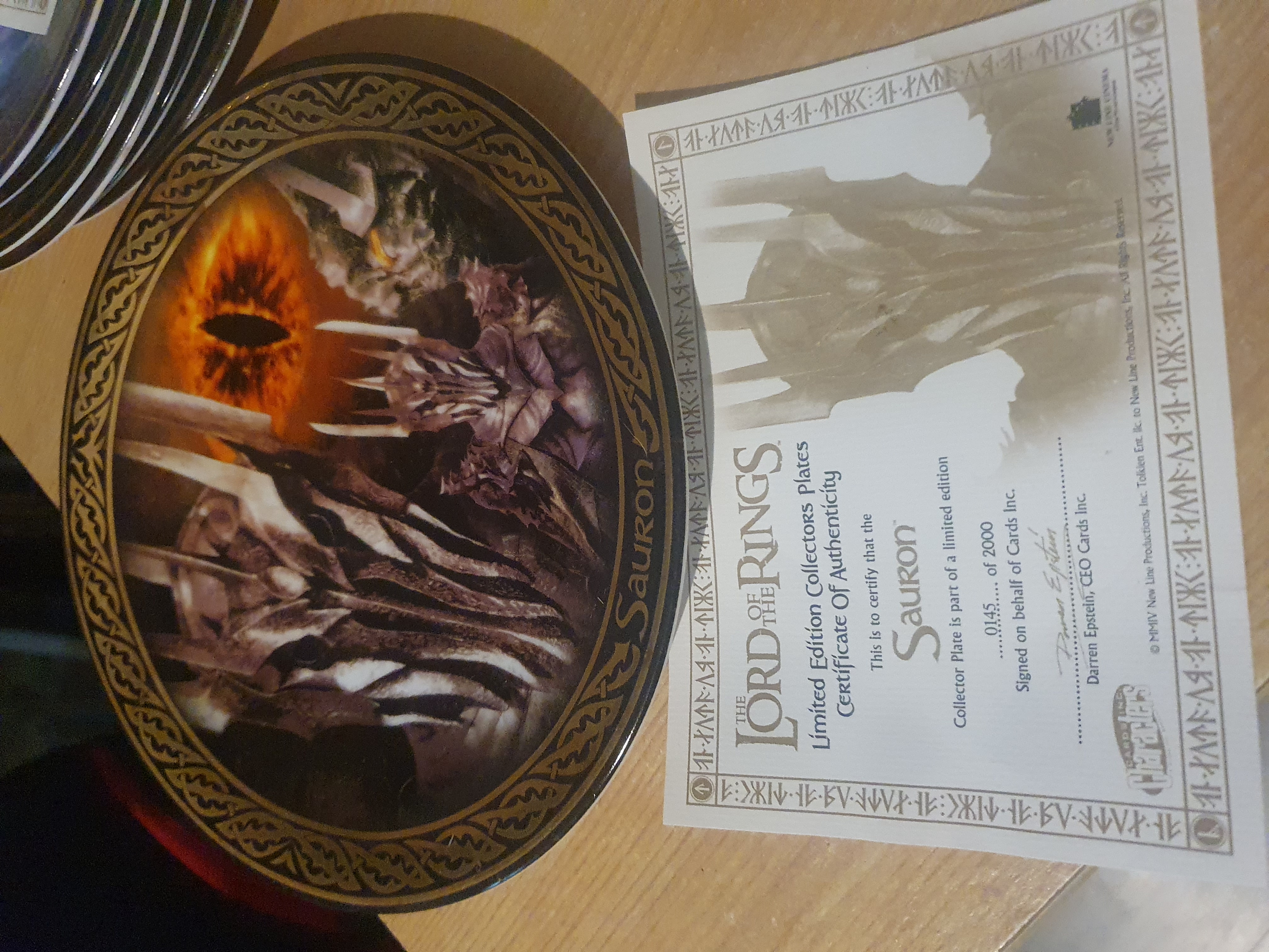 Limited edition Lord of ring collectors plate with Coa