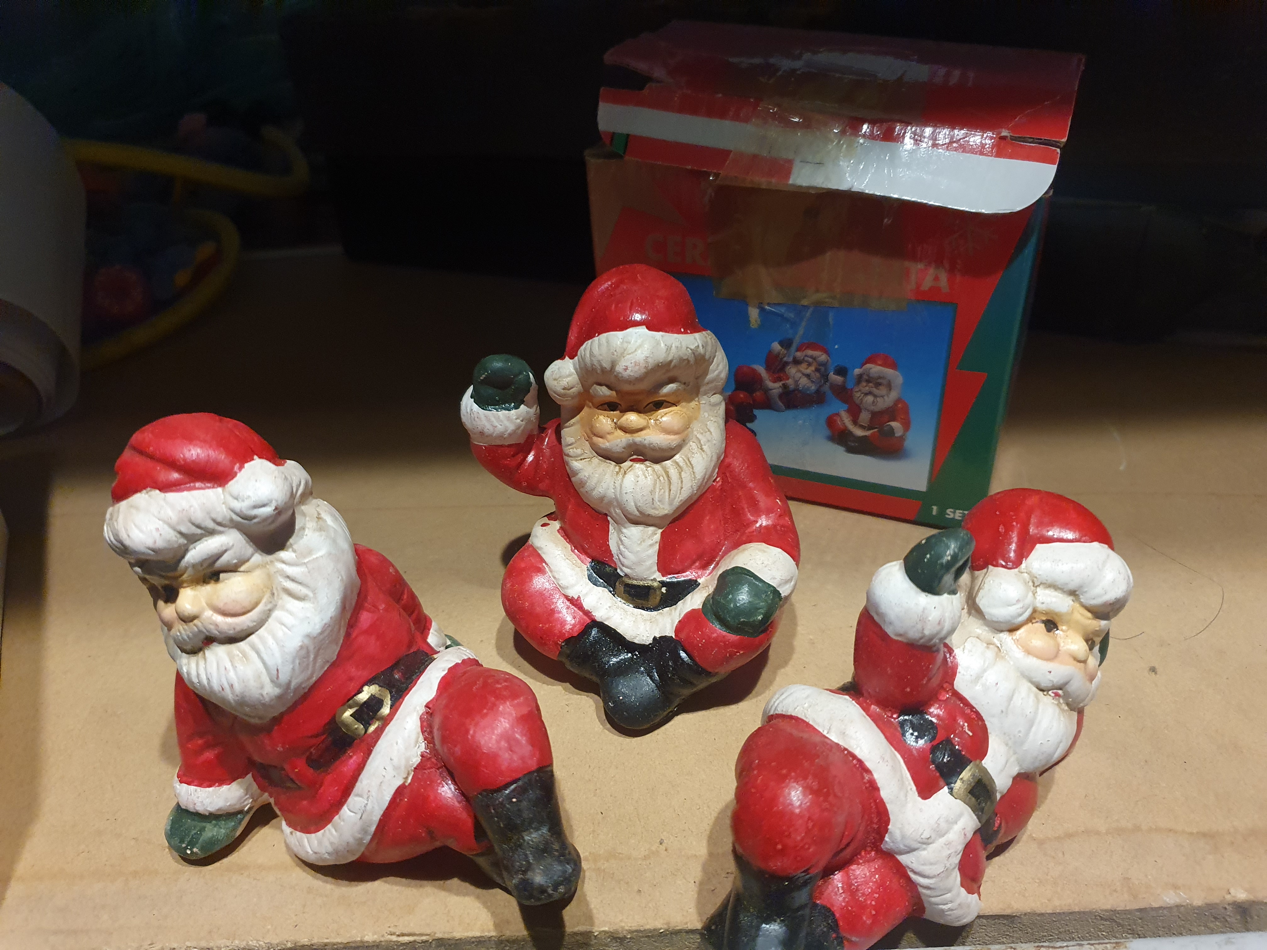 3 boxed Santa's