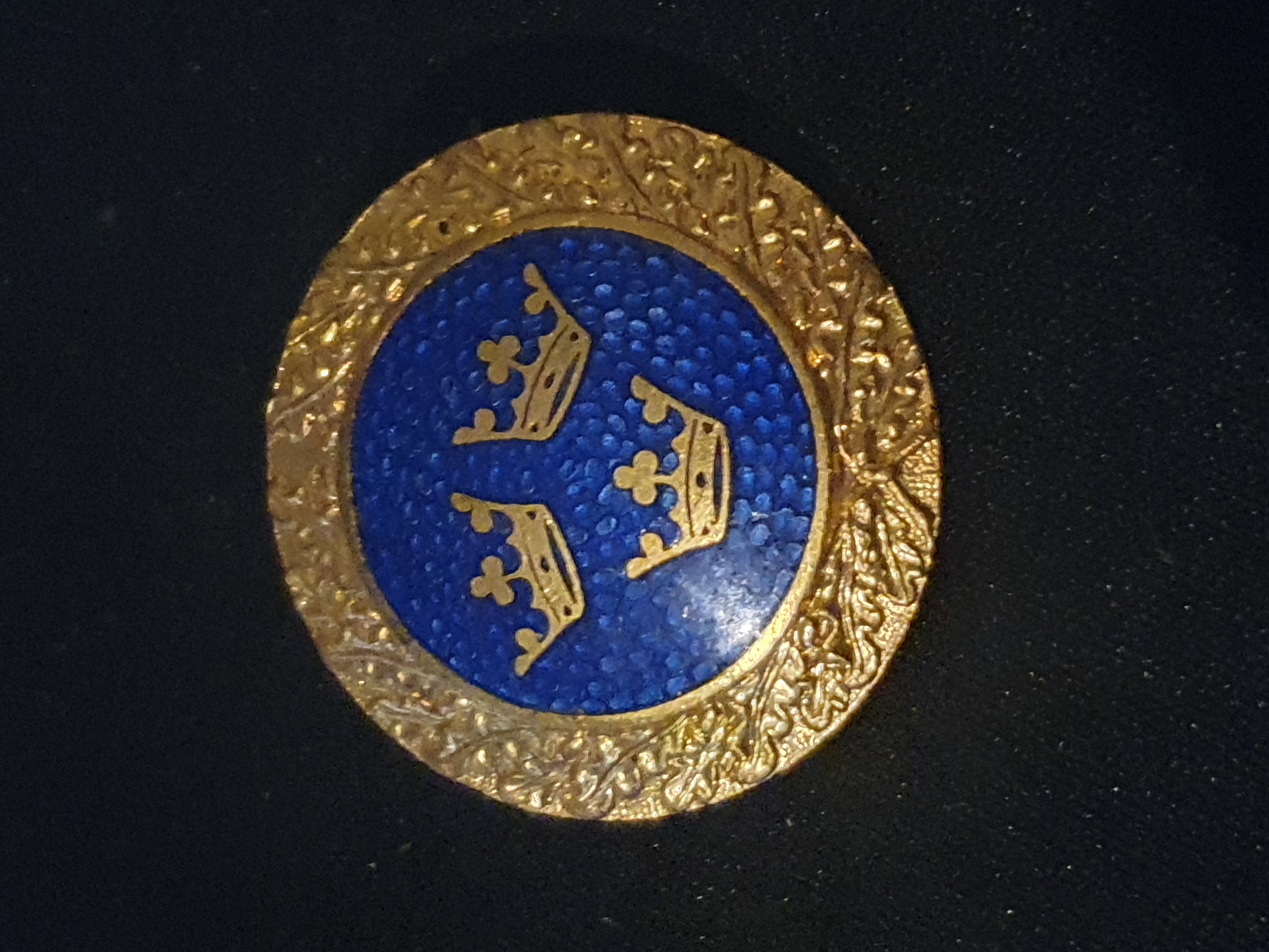 Lot 348: RARE VINTAGE GOLDTONE SWEDISH THREE CROWN Leaf Circular PIN/BROOCH