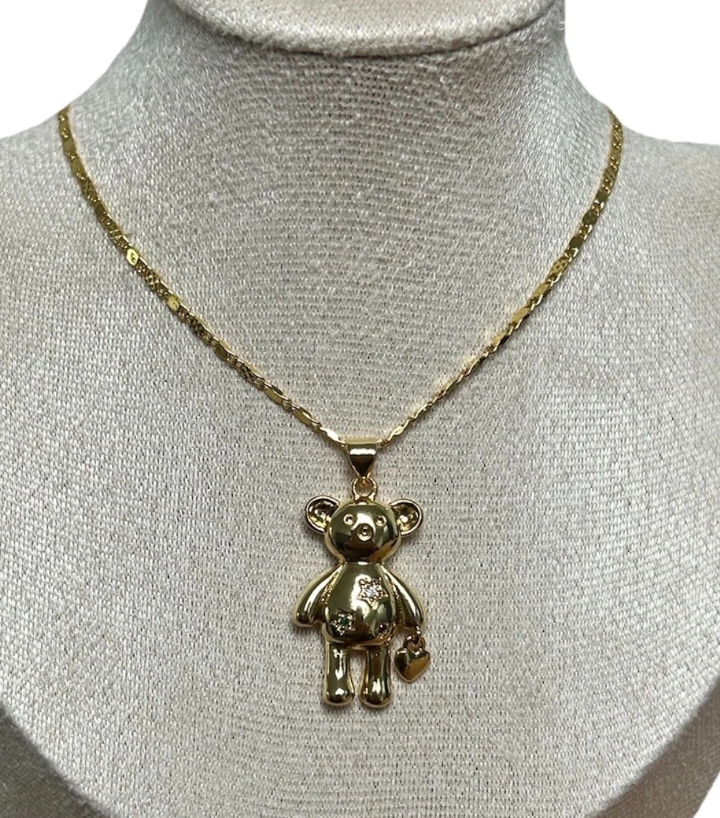18ct Gold Filled CZ Encrusted Teddy Bear Necklace