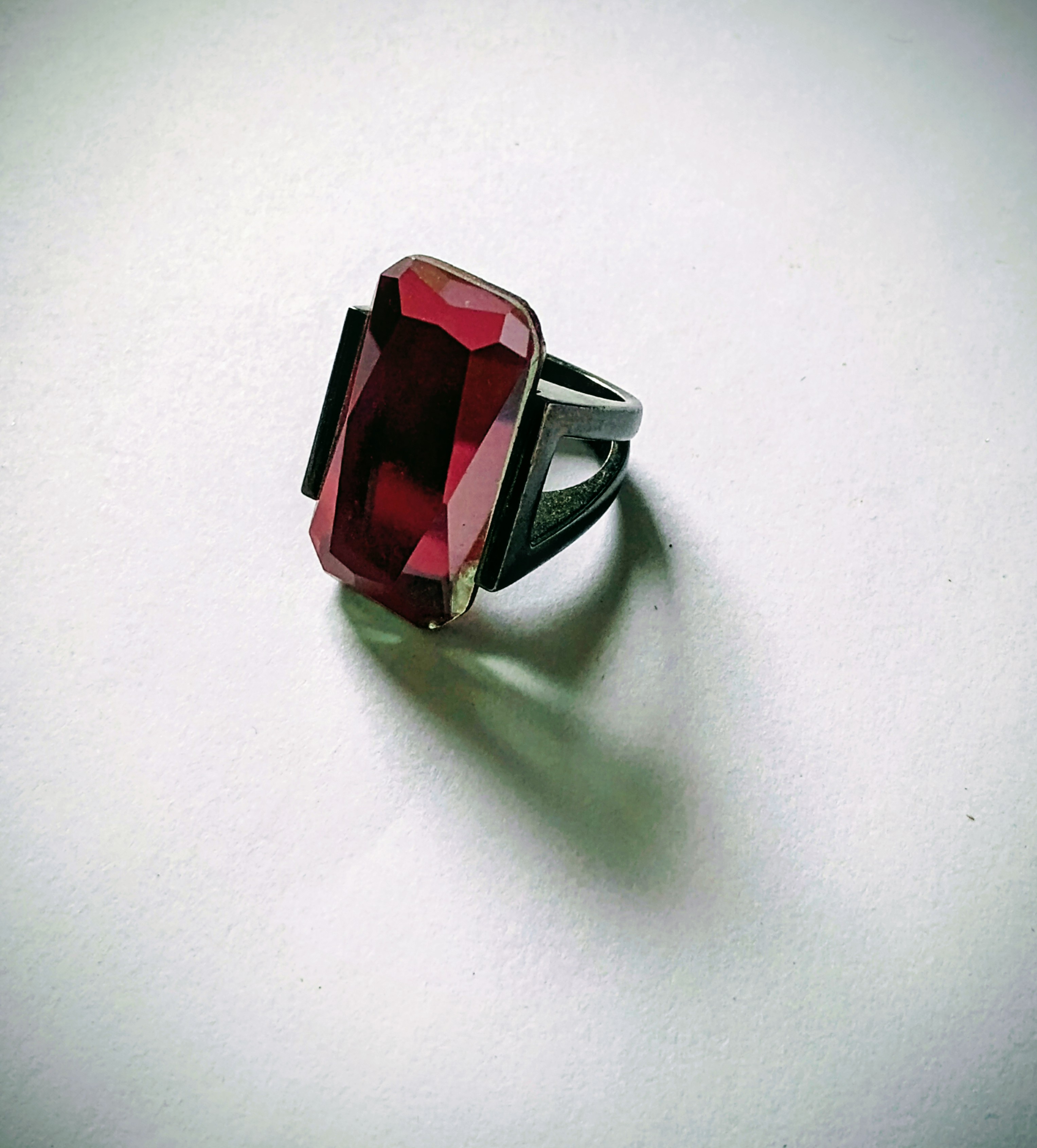 Red rectangular stone solid Ring
