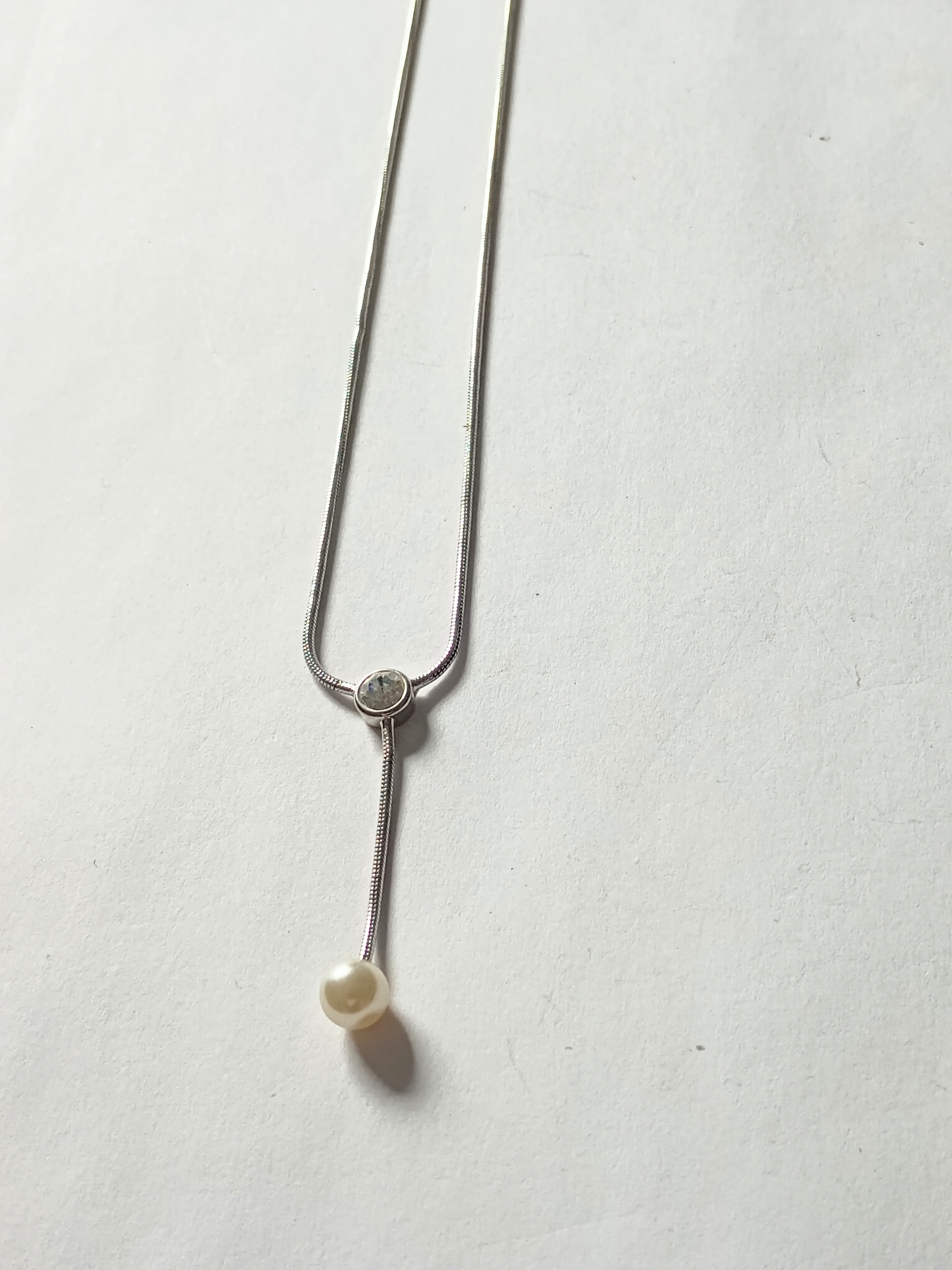 Beautiful Single Stone & Pearl style pendant Chain