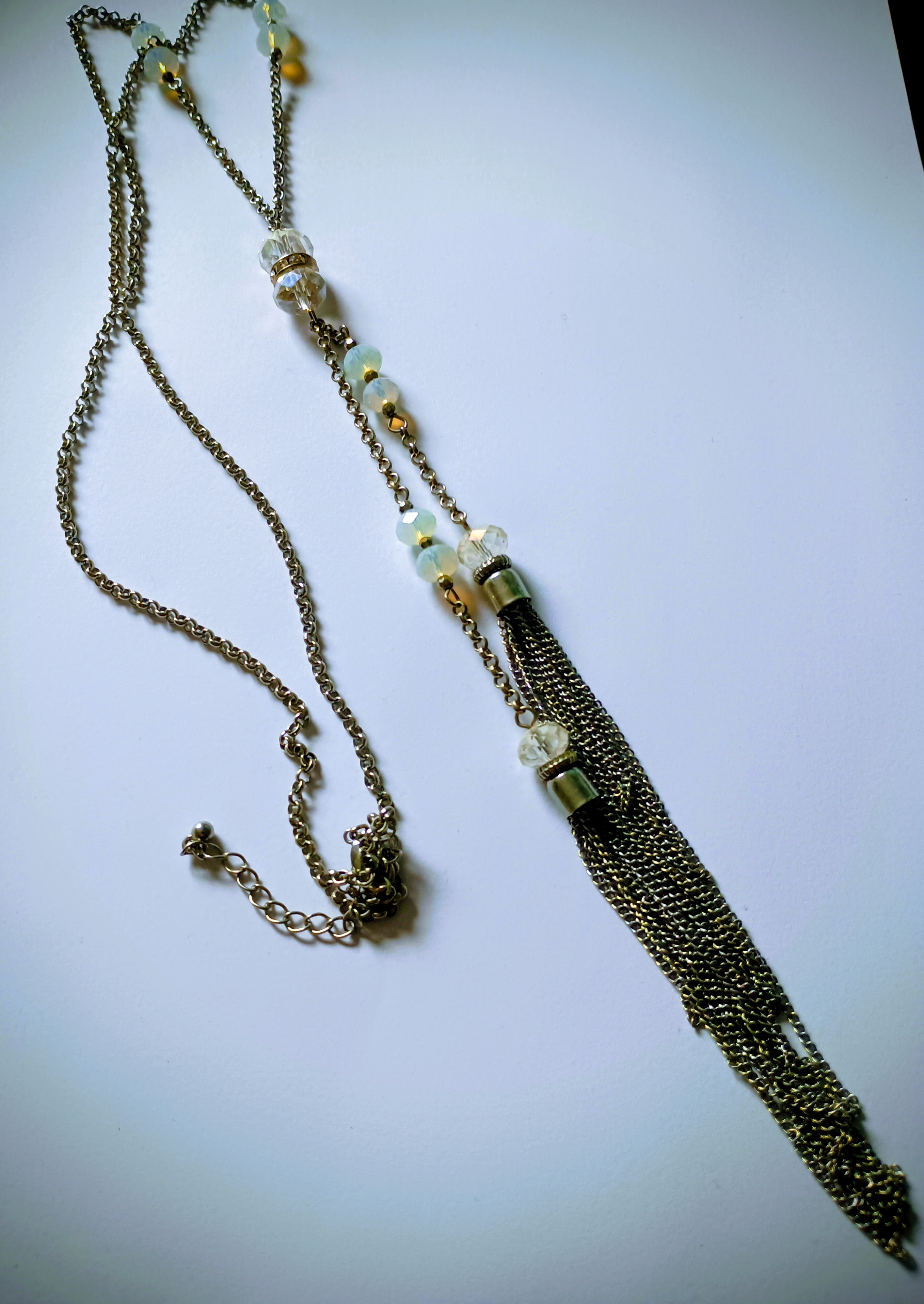 Ladies New Long iridescent Stone Tassel detail chain