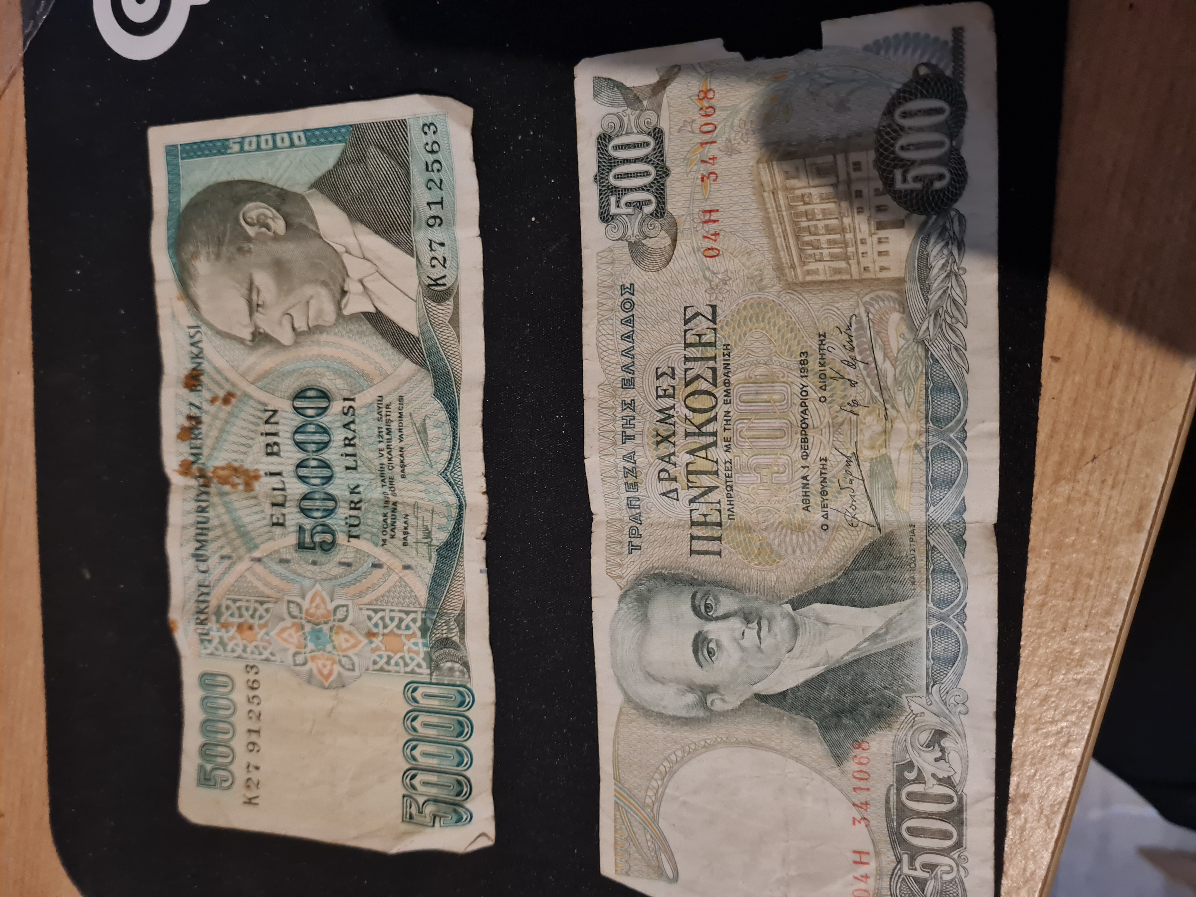 2 vintage banknotes foreign